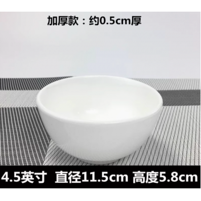 国产纯白色陶瓷饭碗4.5英寸直径11.5cm