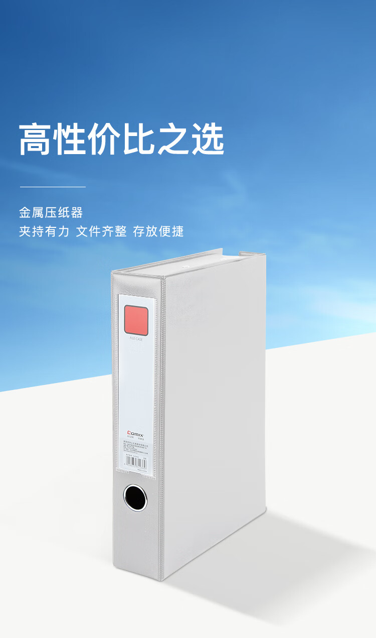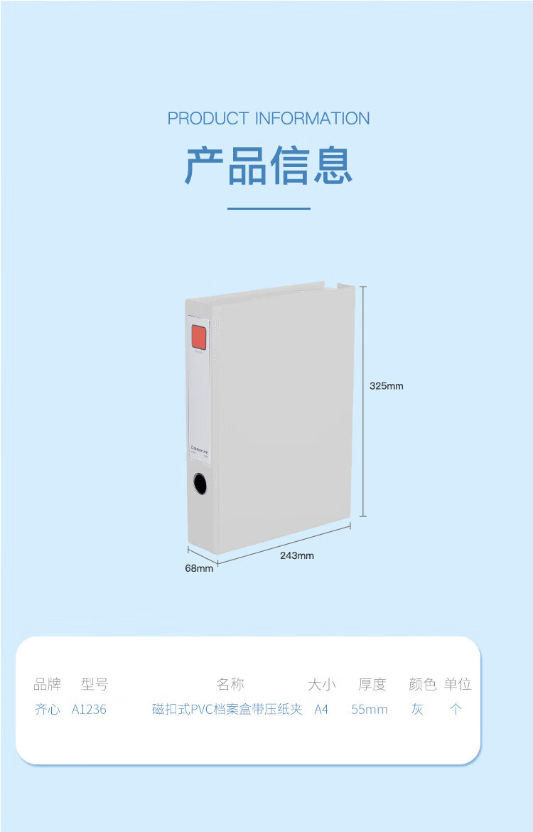 齐心(Comix) 档案盒A4 文件盒55mm 磁扣式资料盒(带压纸夹) 灰色 办公文具 A1236