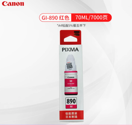 佳能GI-890M红色墨水瓶 适用G1800/G2800/G3800/G4800打印机
