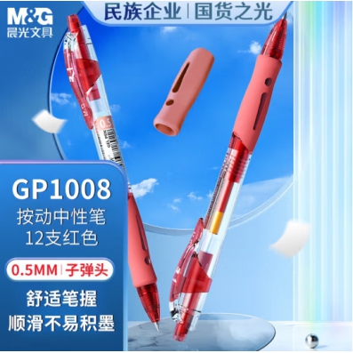 晨光 GP1008 按动 中性笔 红色 12支/盒