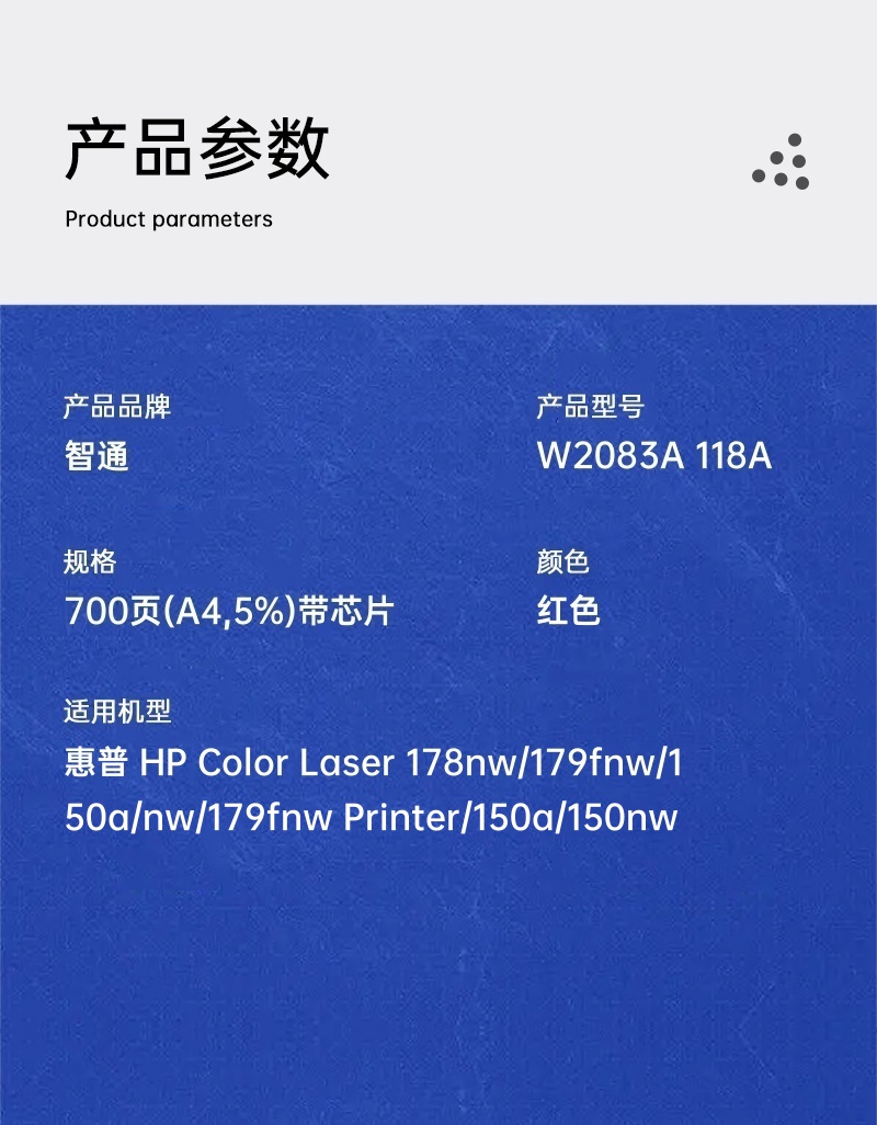 智通 W2083A 118A 粉盒 带芯片 红色 700页适用于惠普 HP Color Laser 178nw 179fnw 150a nw