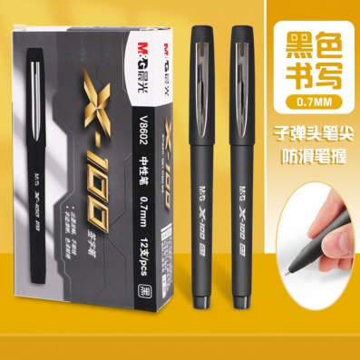 晨光拔盖中性笔X-100 AGPV8602黑0.7-12 支