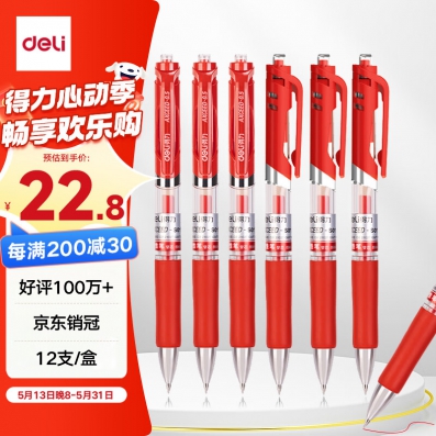 得力 S01 红色 按动中性笔 经典款