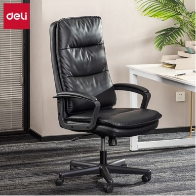 得力 91029 电脑椅 家用办公椅 转椅人体工学皮椅子 老板椅