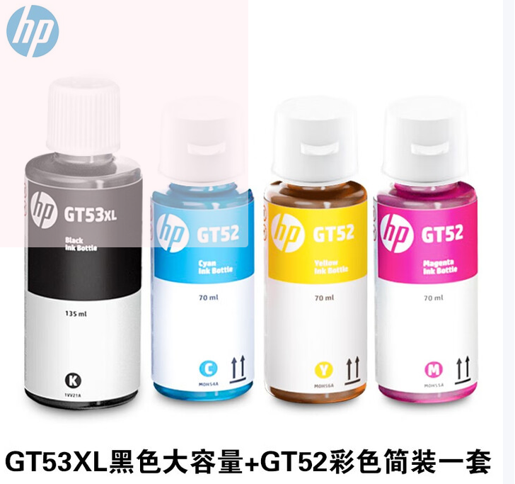 惠普 GT53/GT52原装墨水 适用惠普310/5810/5820/418/419/518/519 53XL+52四色墨水简装