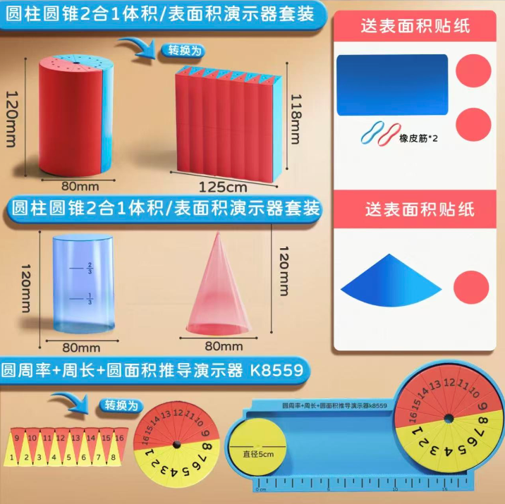 圆柱体几何图形体积比演示器模型学具(圆柱/圆锥/圆周率演示套装)