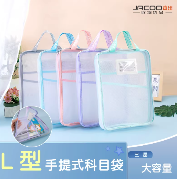 杰出JC14456手提式透明L型拉链文件袋