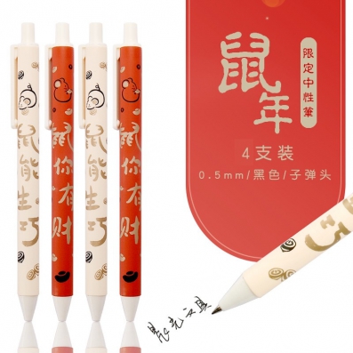 晨光文具鼠年限定非你莫鼠中性笔0.5mm黑色水笔学生专用考试笔套装 非你莫鼠【按动款】_4支