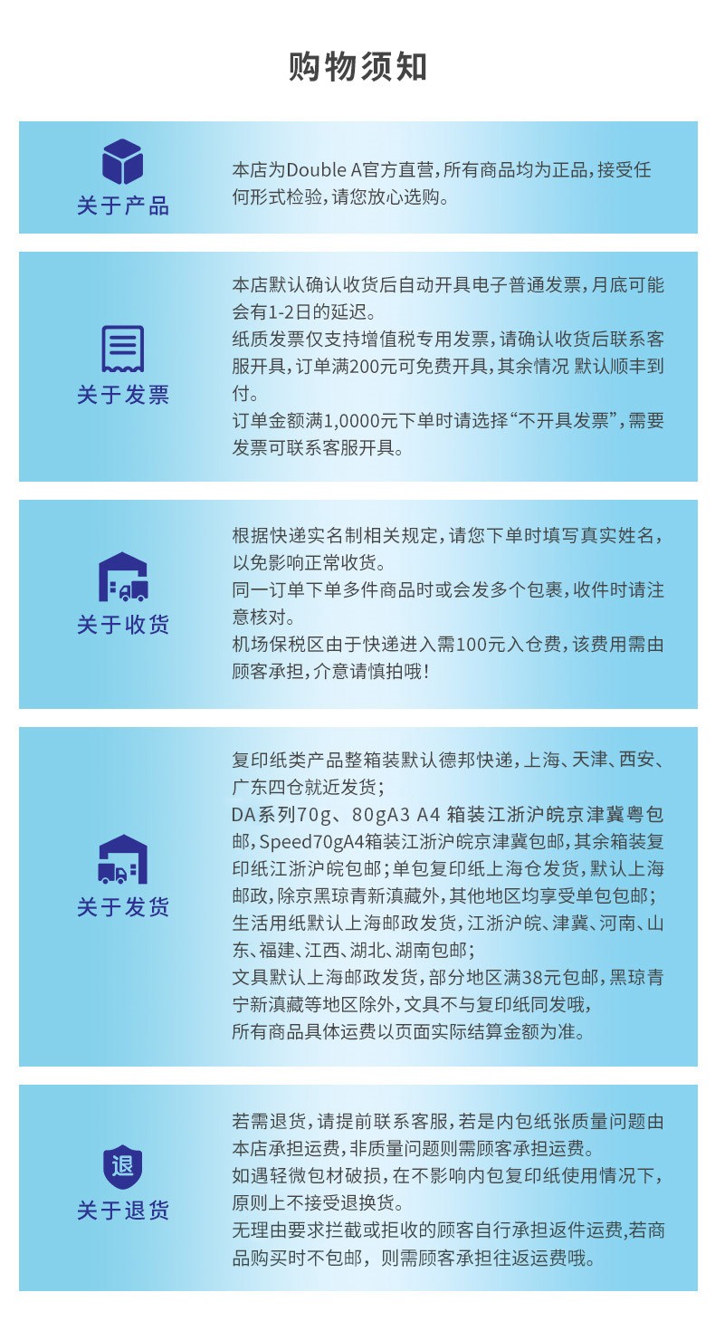 Double A a4纸 达伯埃打印纸70g克500张A4办公打印纸(2500张) 70g A4 500张/包 5包/箱