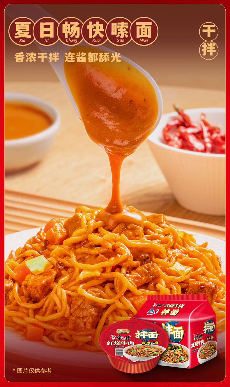 康师傅 方便面整箱装 干拌面红烧牛肉面 拌面泡面碗装速食 126g*12盒