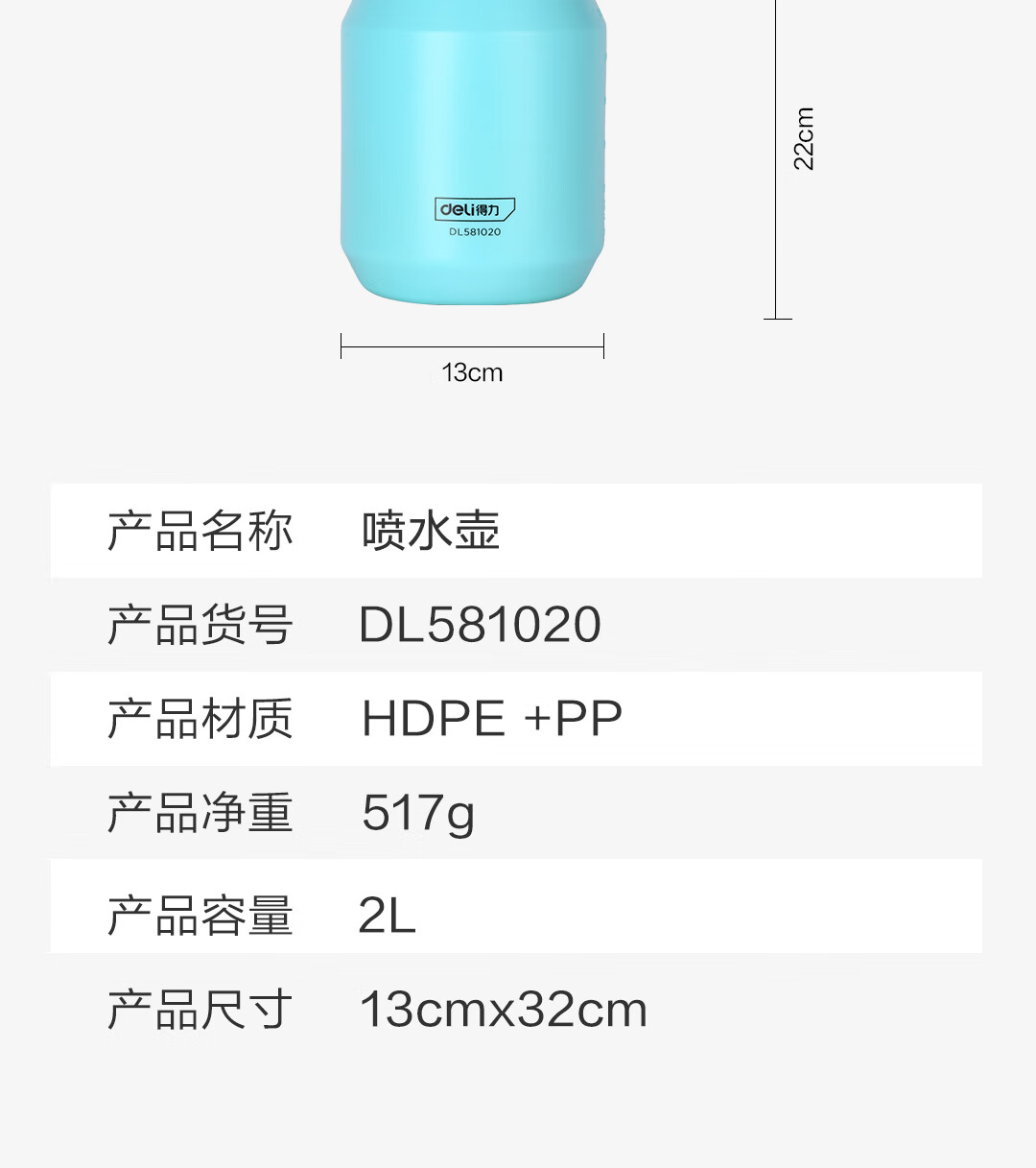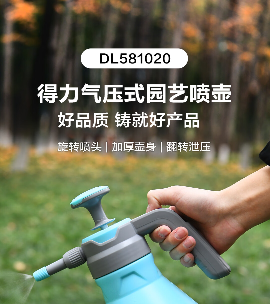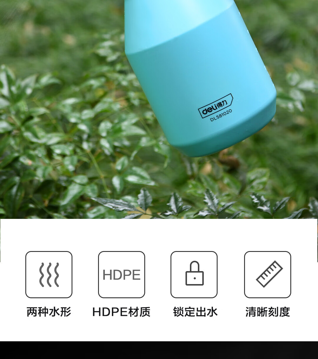 得力(deli)喷水壶喷雾器 园林园艺浇花洒水壶酒精消毒气压式2L DL581020