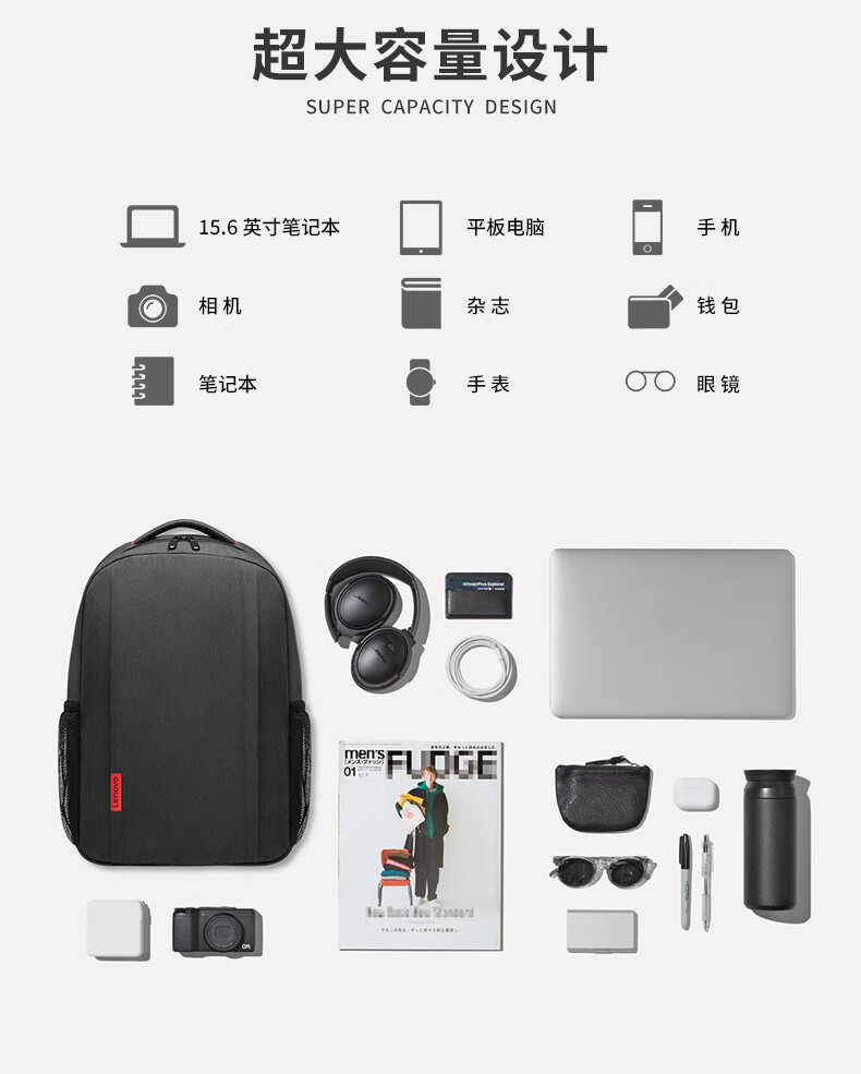 联想(Lenovo)笔记本双肩包男士16英寸背包学生书包出差包