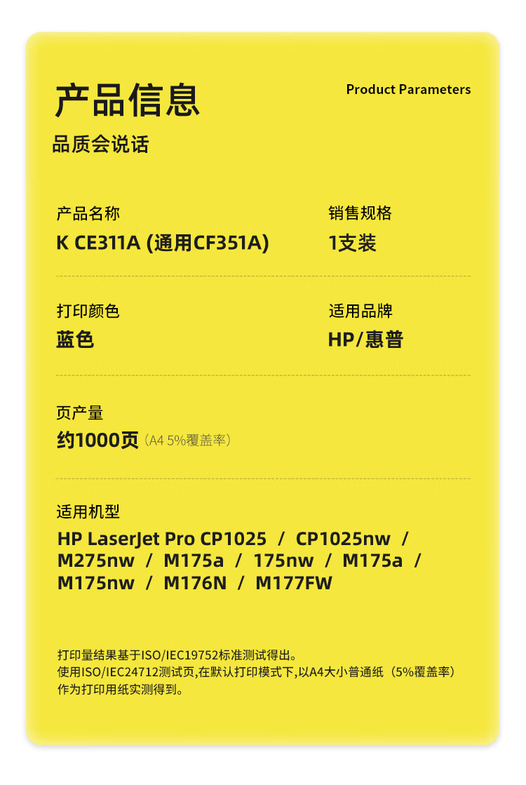 科思特 K CE311A 粉盒 蓝色(适用HP LaserJet Pro CP1025/CP1025nw/M275nw/M175a/175nw)1000页 专业版