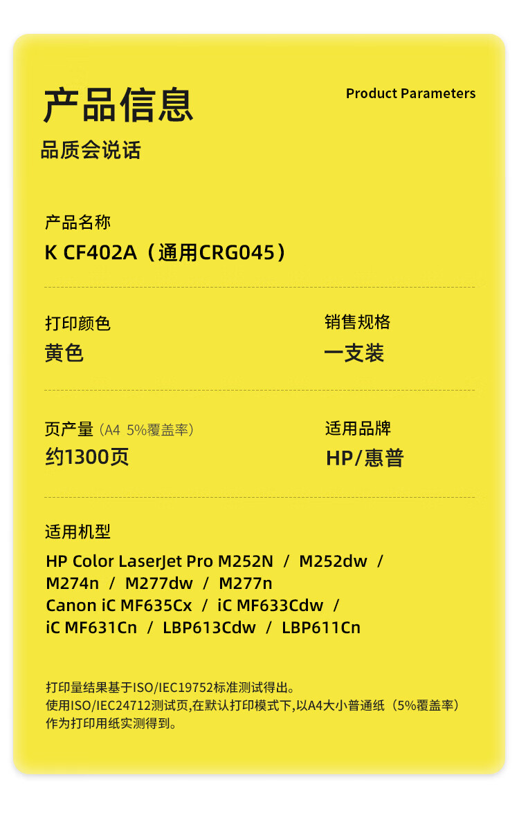 科思特 K CF402A 硒鼓 黄色(适用惠普M252n/M252dw/M274n/M277dw/M279n)打印量1300页 专业版