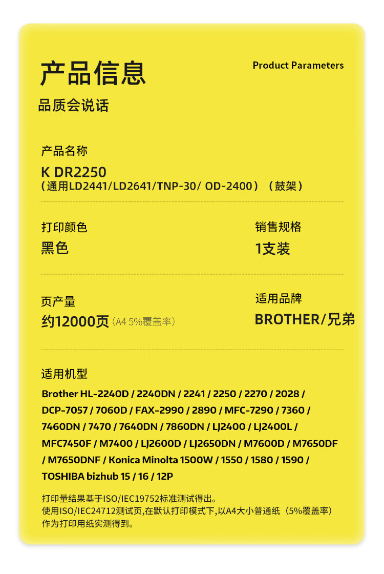 科思特 K DR2250 鼓架 黑色(适用Brother HL-2240D/HL-2240DN/HL-2241/HL-2250)打印量12000页 专业版