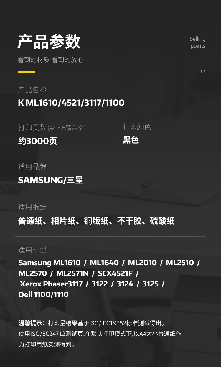 科思特K ML1610硒鼓 适用三星SCX4521F ML2010 2570 施乐3117 戴尔1100 可打印3000页黑色专业版