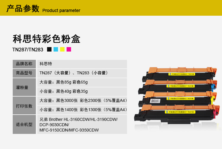 科思特 TN287粉盒 适用兄弟打印机 HL3160 DCP9030 MFC9150 红色 M TN287碳墨盒(大容量)专业版