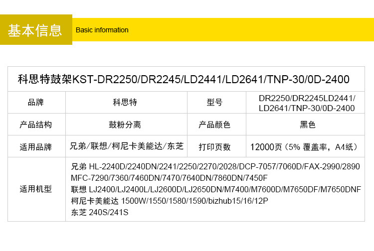 科思特K DR-2245鼓架硒鼓 适用兄弟打印机 HL2241 2028 7470 DCP7057 MFC7460 FAX2890 专业版