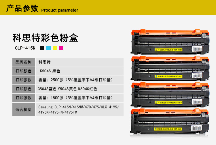 科思特 Y504S(黄)墨粉盒 适用三星CLP-415N/415NW/470/475/CLX-4195/4195N/4195FN/4195FW 硒鼓 专业版