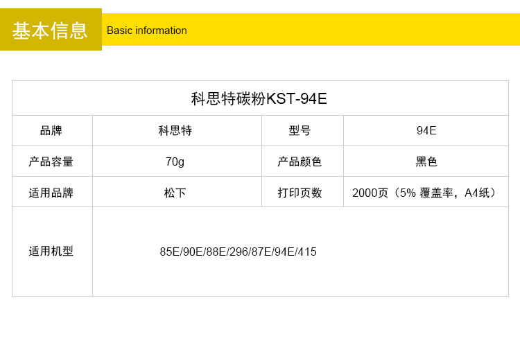 科思特 94E/85E/90E(70g) 碳粉 适用松下 85E/90E/88E/296/87E/94E/415 专 默认颜色