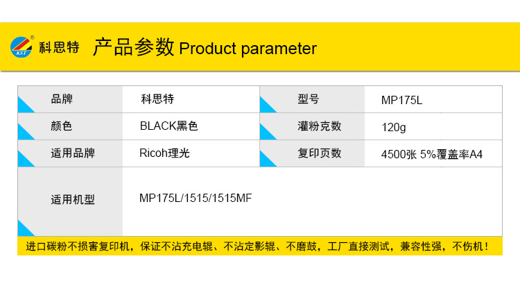 科思特MP175L粉盒 进口粉高清 适用Ricoh理印机 MP1515 1515MF 碳墨粉筒(1支装) 默认颜色