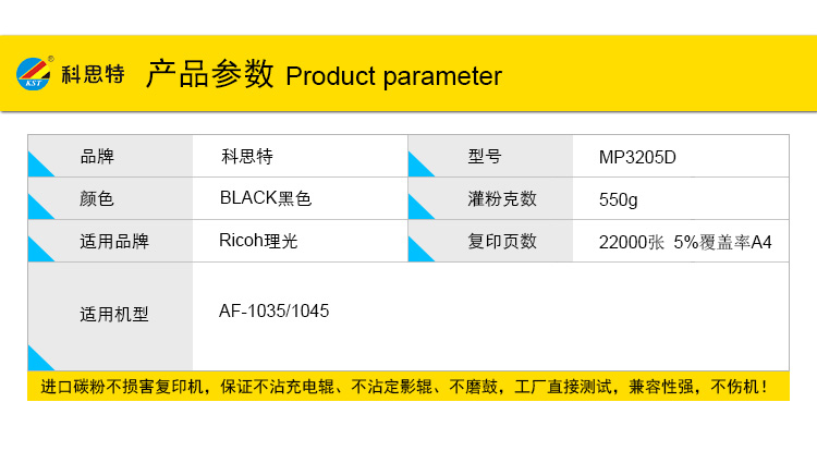 科思特MP3205D粉盒 进口粉高清 适用理印机 AF-1035 1045 碳墨粉筒 黑色(1支装) 默认颜色