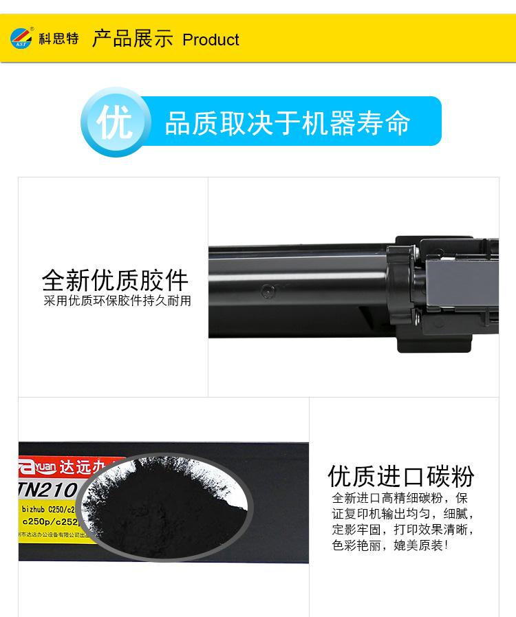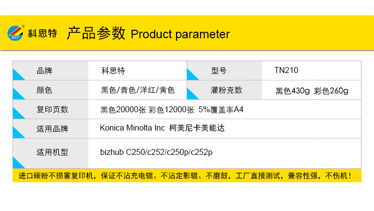 科思特TN210碳墨彩色粉盒 适用柯尼卡美能达C250 C252 C250p C252p 青蓝色C