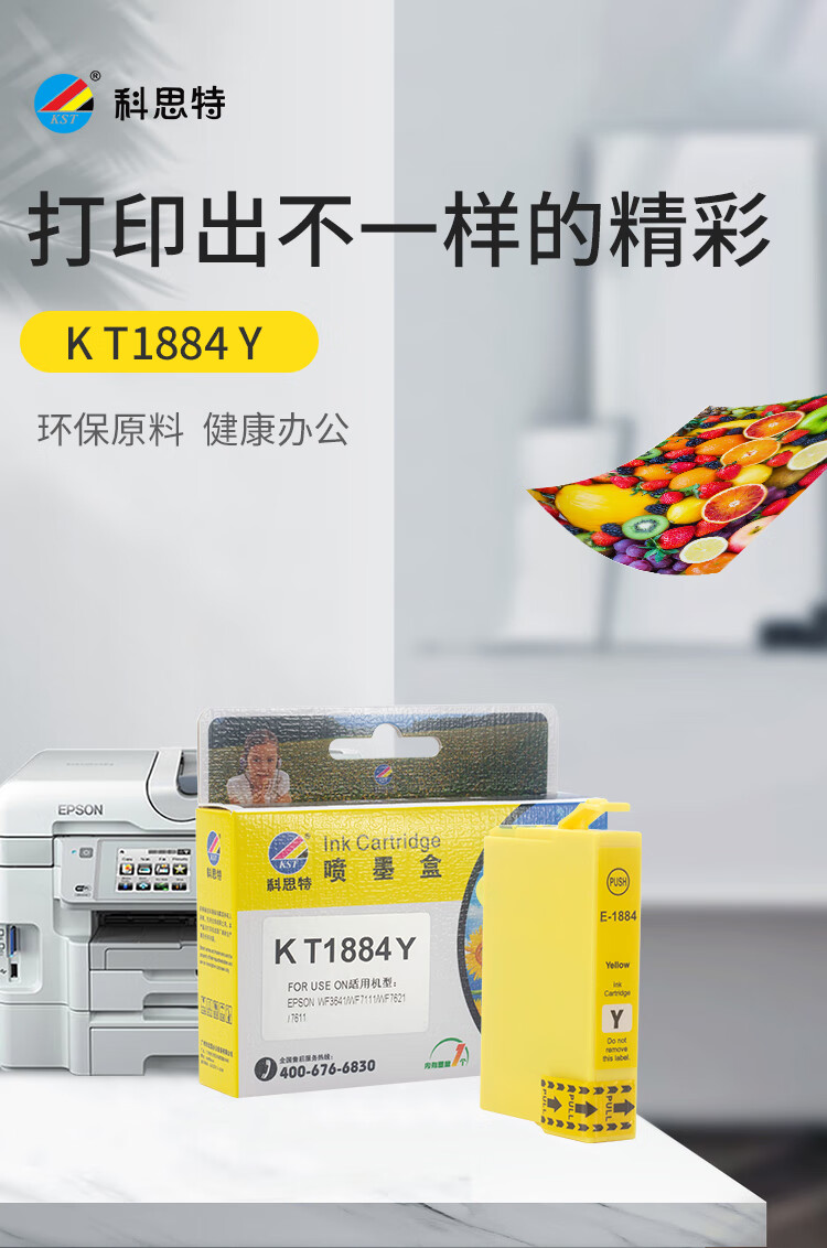 科思特 T1884Y 黄色墨盒 适用爱普生 WF3641 WF7111 WF761 WF7218 WF7728
