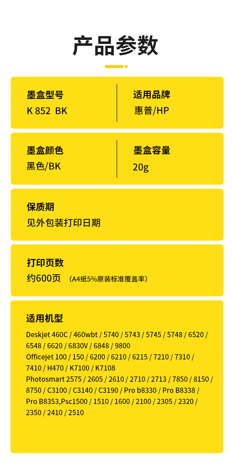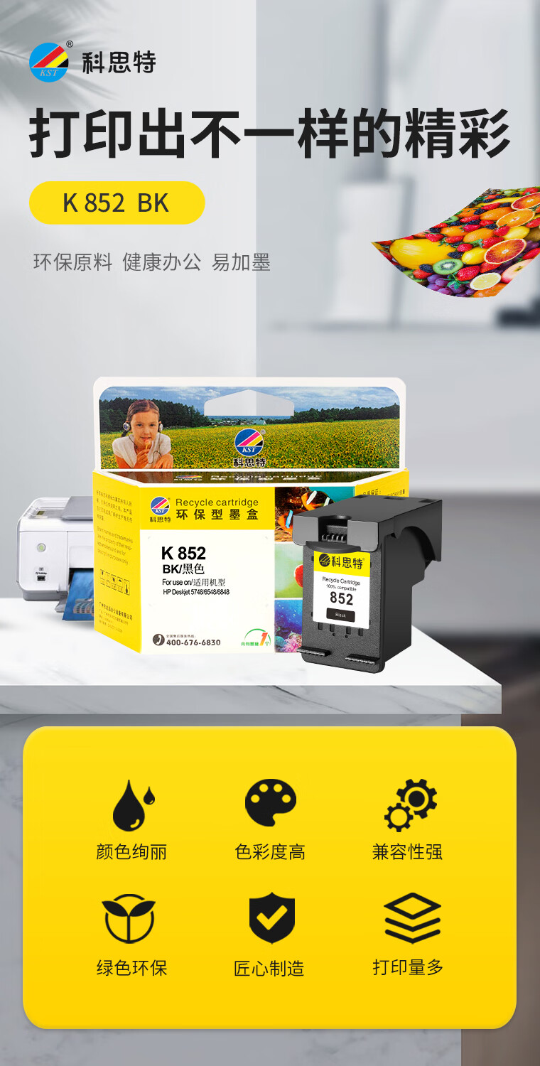科思特K HP 852(8765) BK 黑色墨盒 适用Deskjet 5748/Deskjet 460cb;H470b/K7108