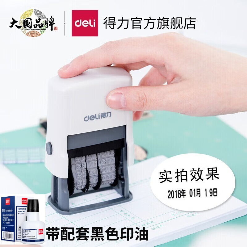 得力(deli) 回墨日期印年月日可调时间印章 生产日期打码机 办公用品 大号实线+配套黑色印油 79952