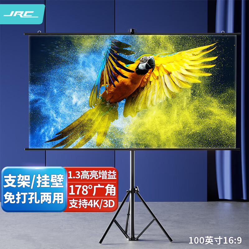 极川 100英寸投影幕布免打孔挂壁支架两用投影仪幕布家用户外便携 白缎幕高清幕布16:9 适用坚果极米当贝小米