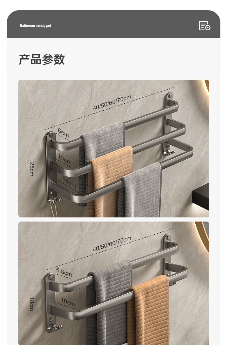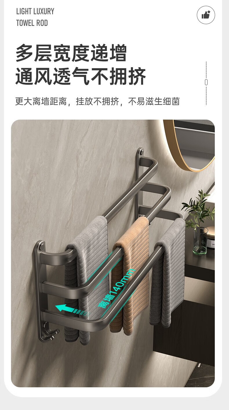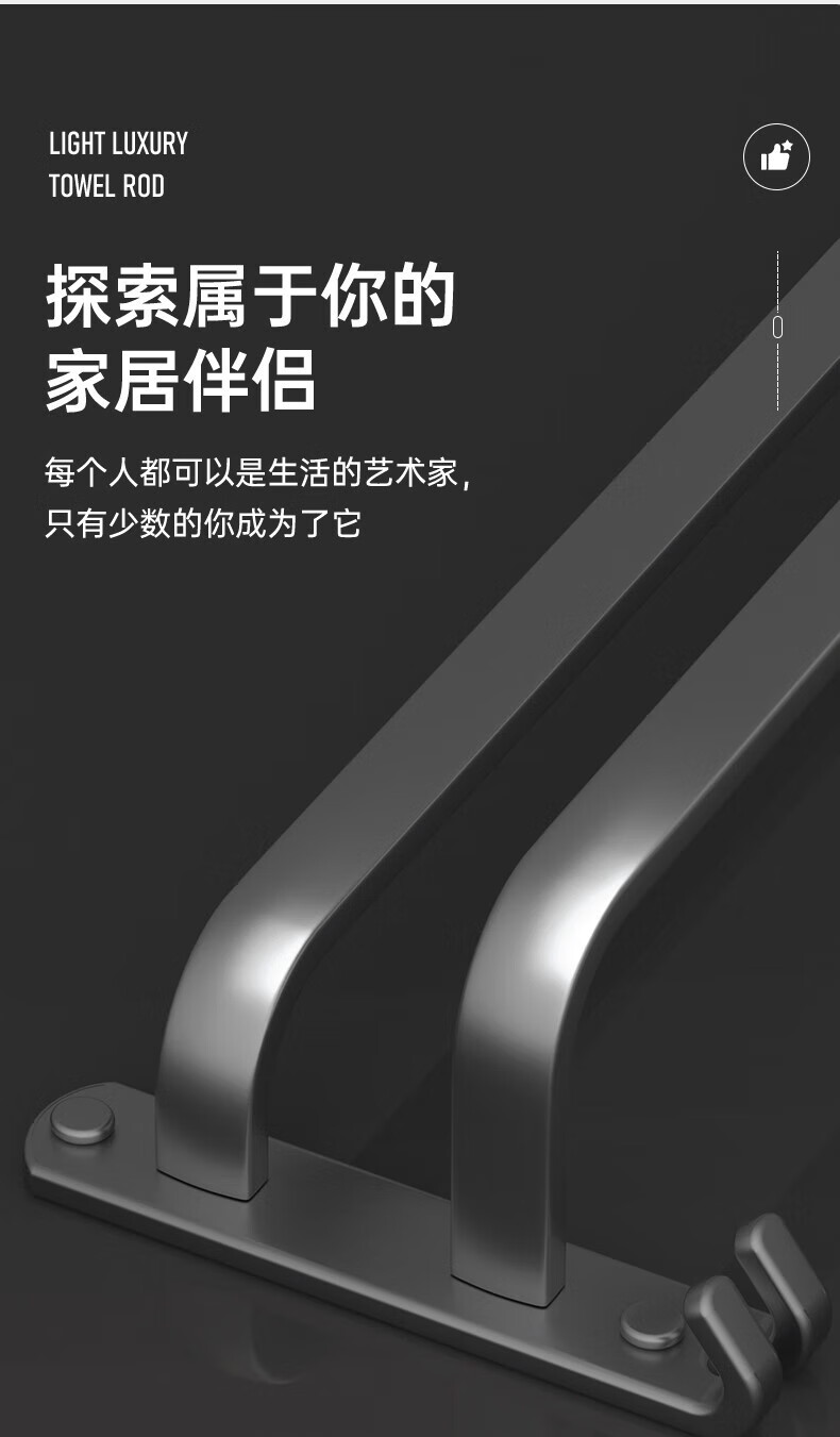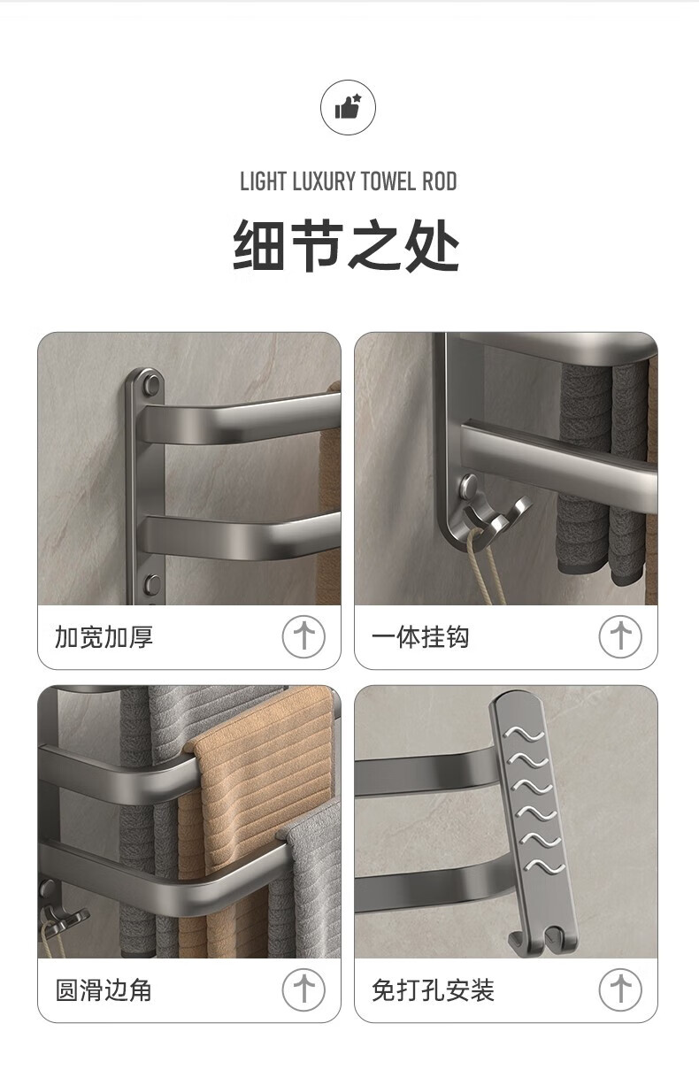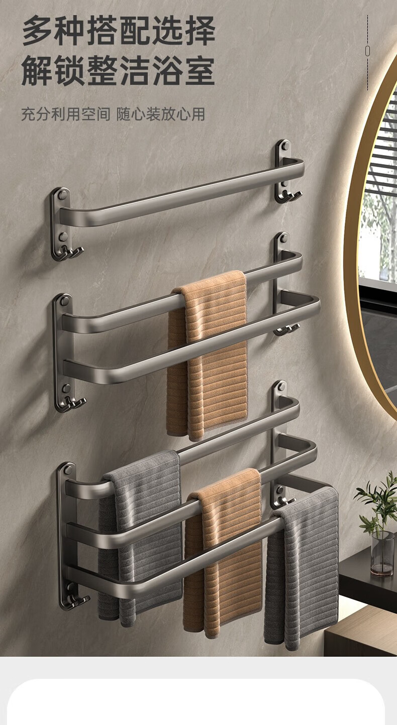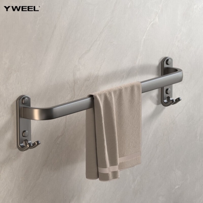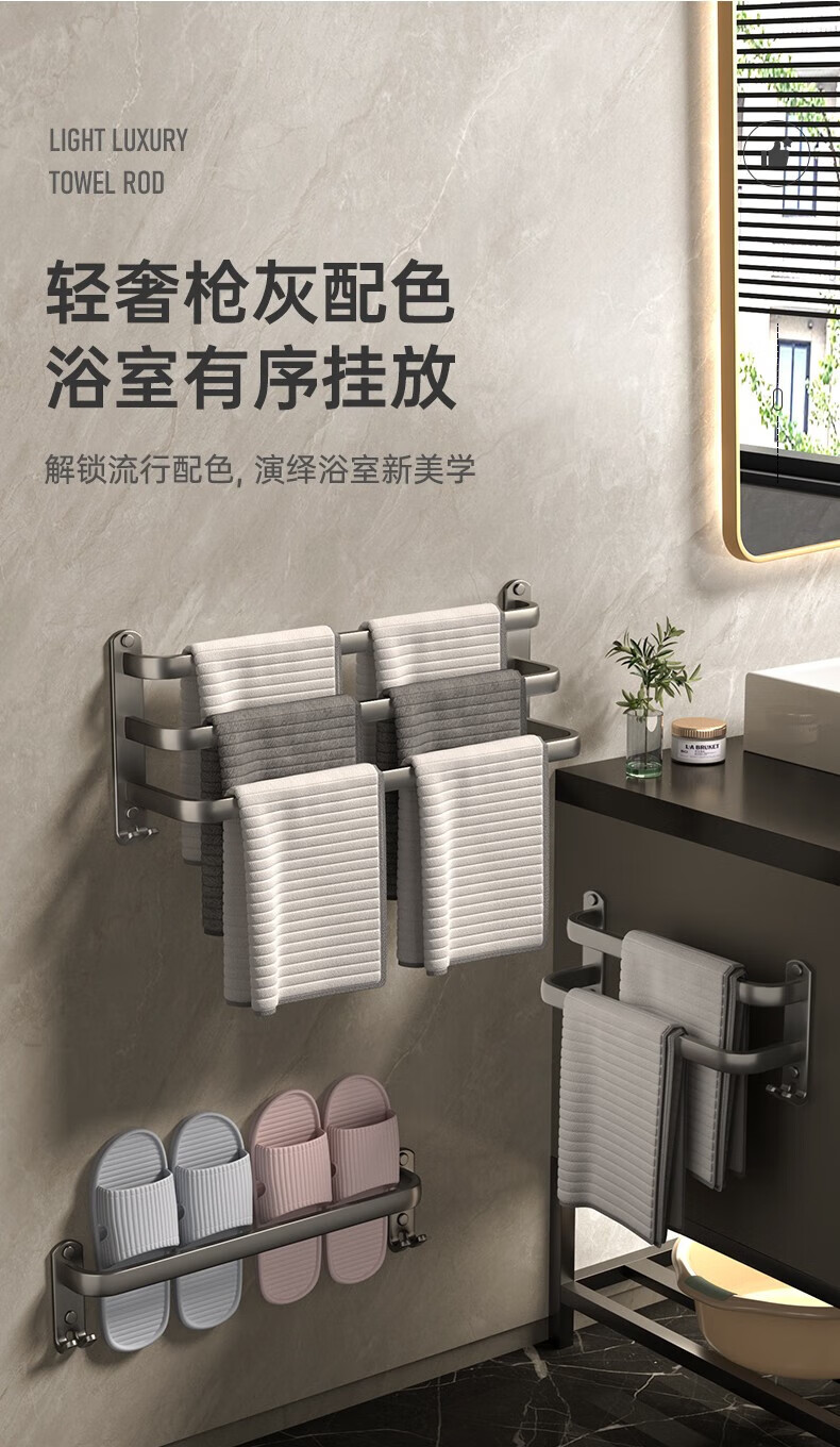 YWEEL枪灰毛巾架免打孔卫生间壁挂式浴室毛巾挂杆置物架洗手间收纳挂架 枪灰单杆40cm-994373