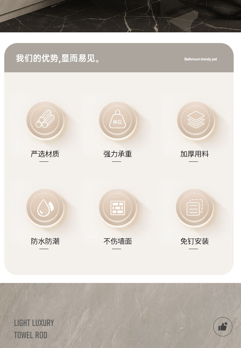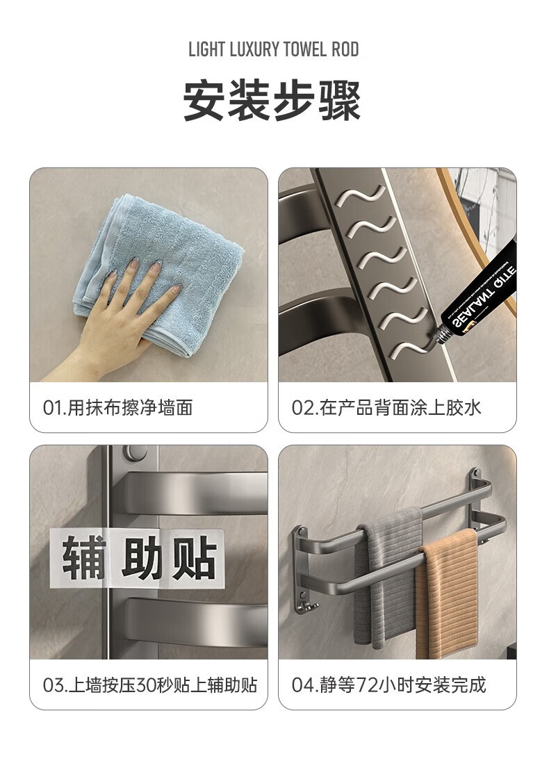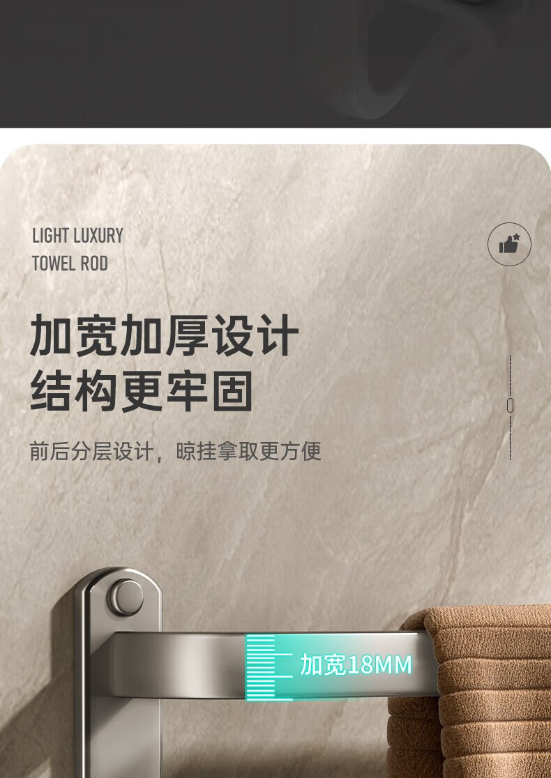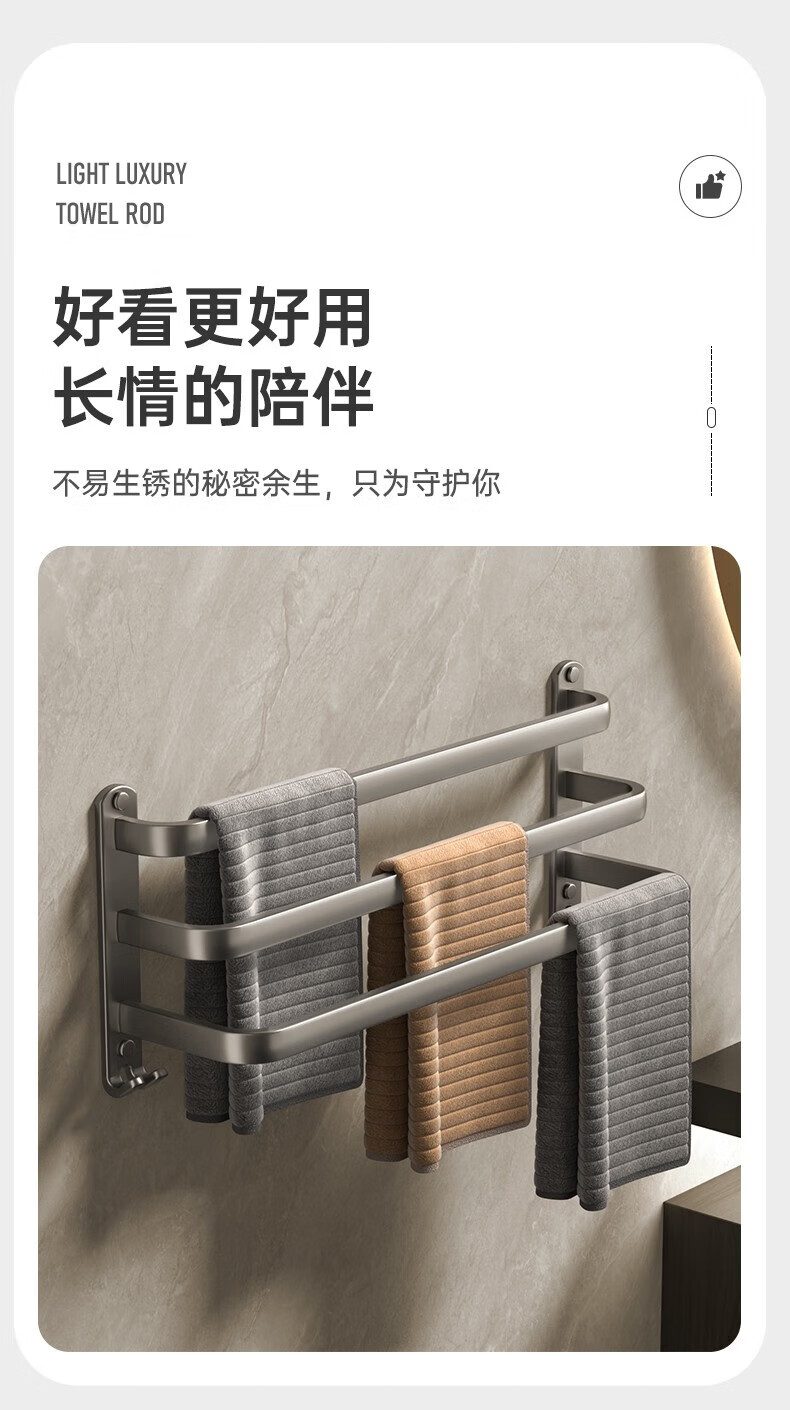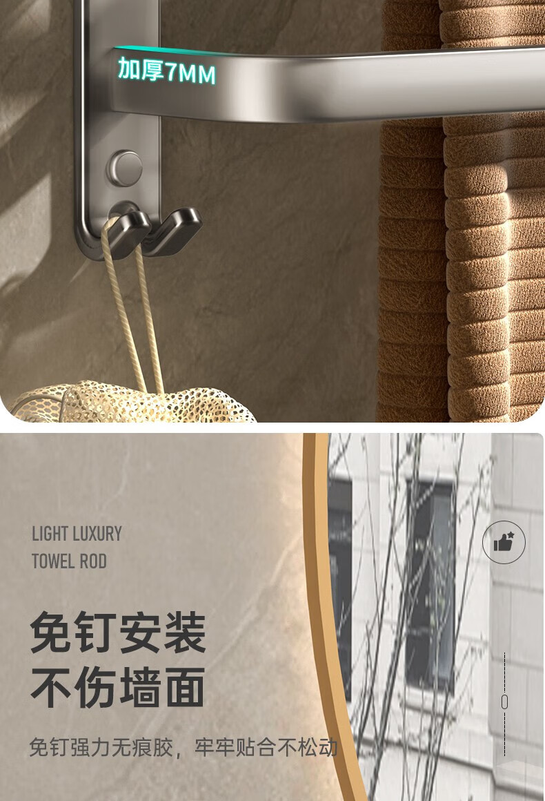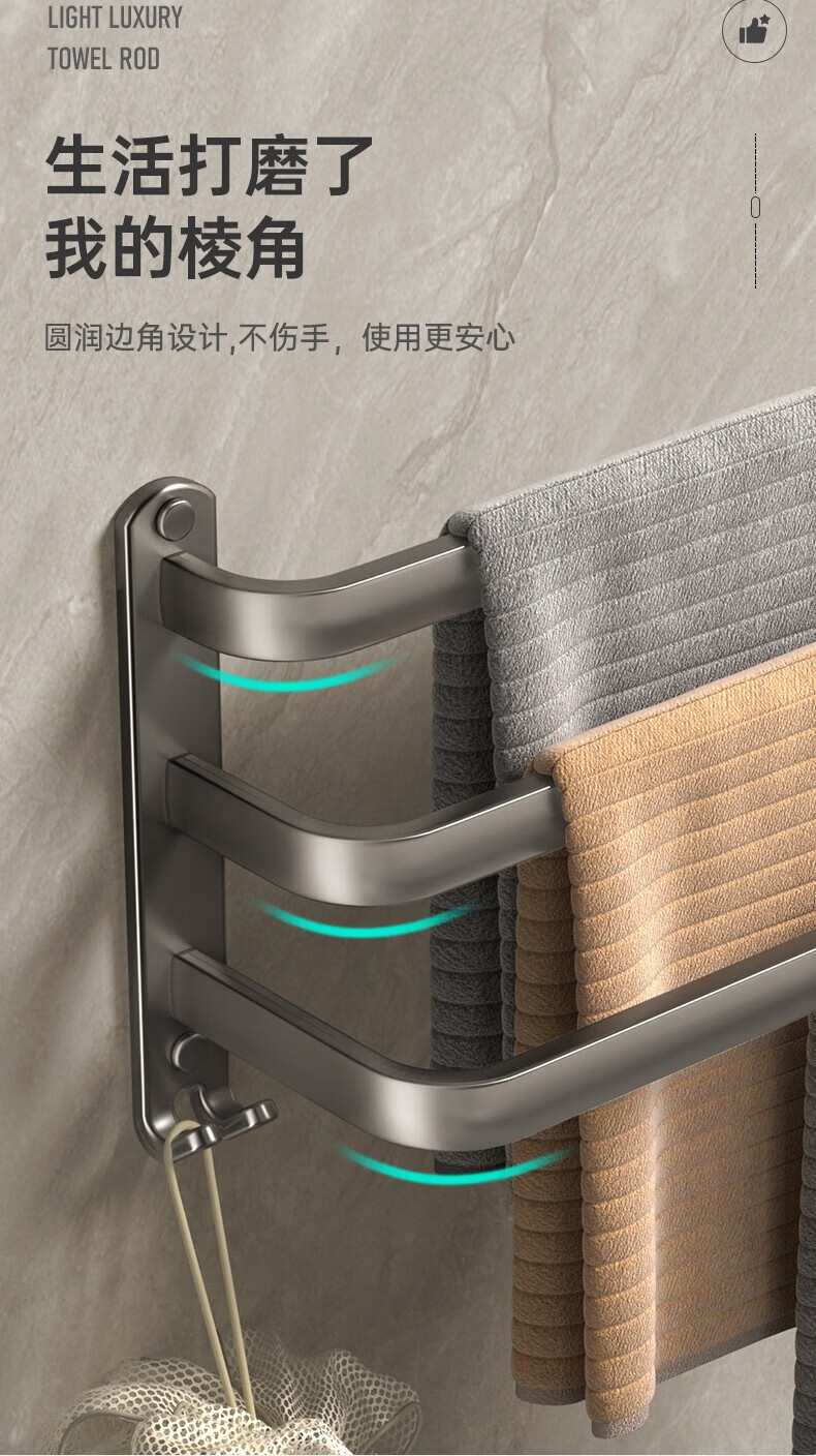 YWEEL枪灰毛巾架免打孔卫生间壁挂式浴室毛巾挂杆置物架洗手间收纳挂架 枪灰单杆40cm-994373